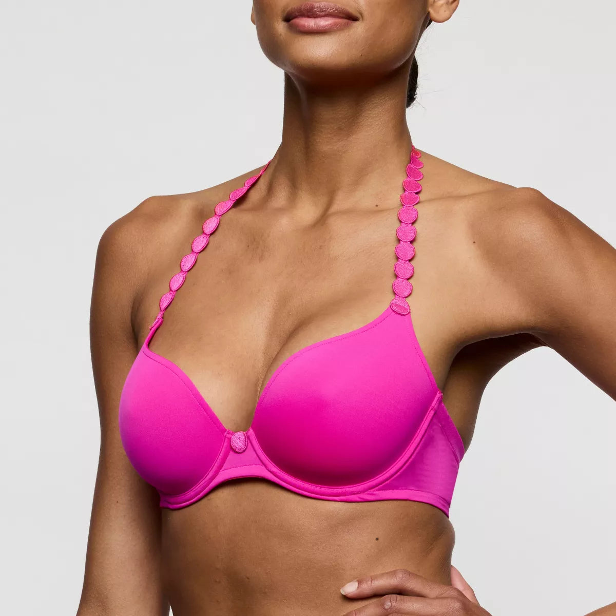 Deze mousse bh met hartvormige cups heeft een elegante belijning. De schouderbandjes draag je recht of rond je hals.