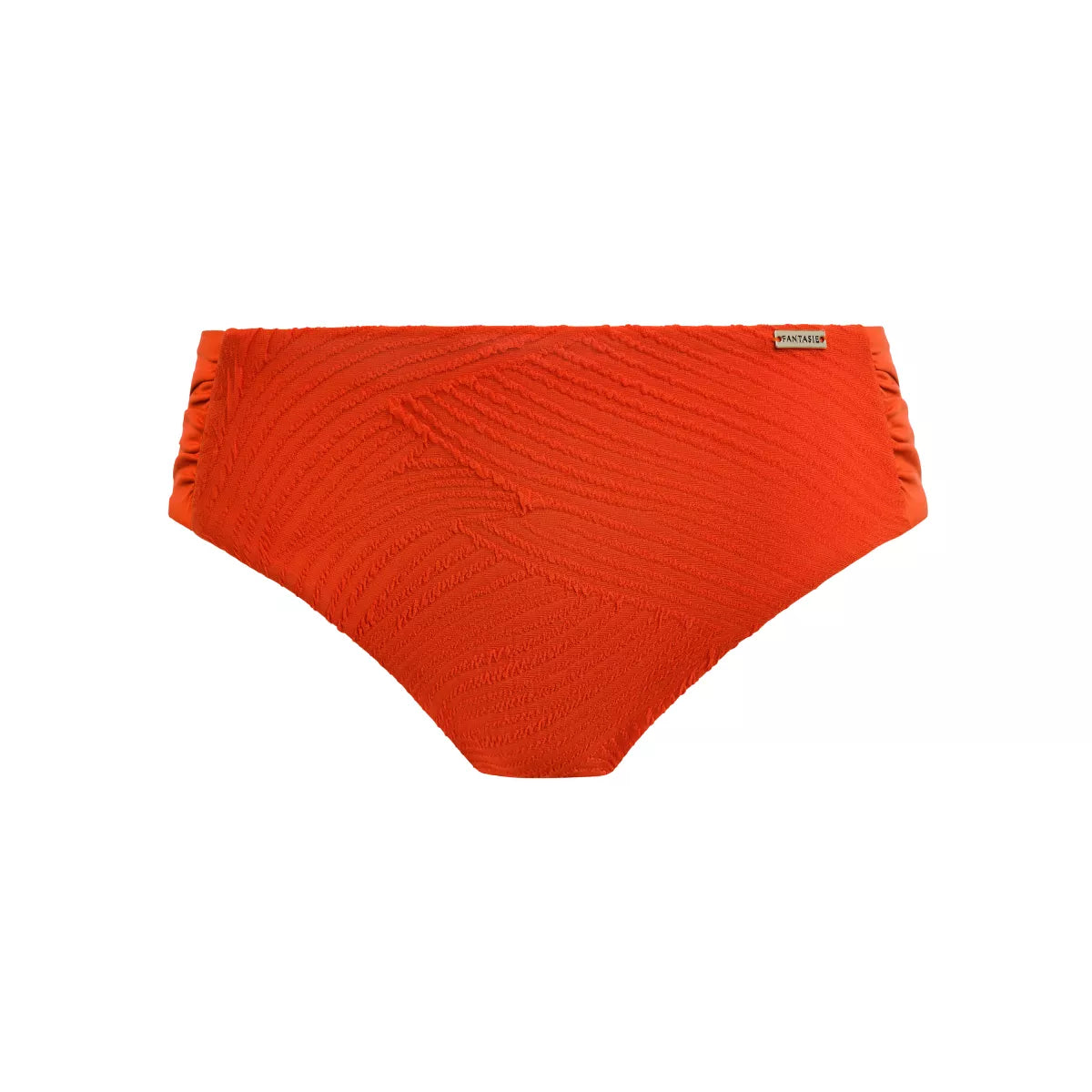 De gestructueerde stof van Ottawa, gecombineerd met plooitjes op de heupen, zorgen voor een stijlvol bikinibroekje.