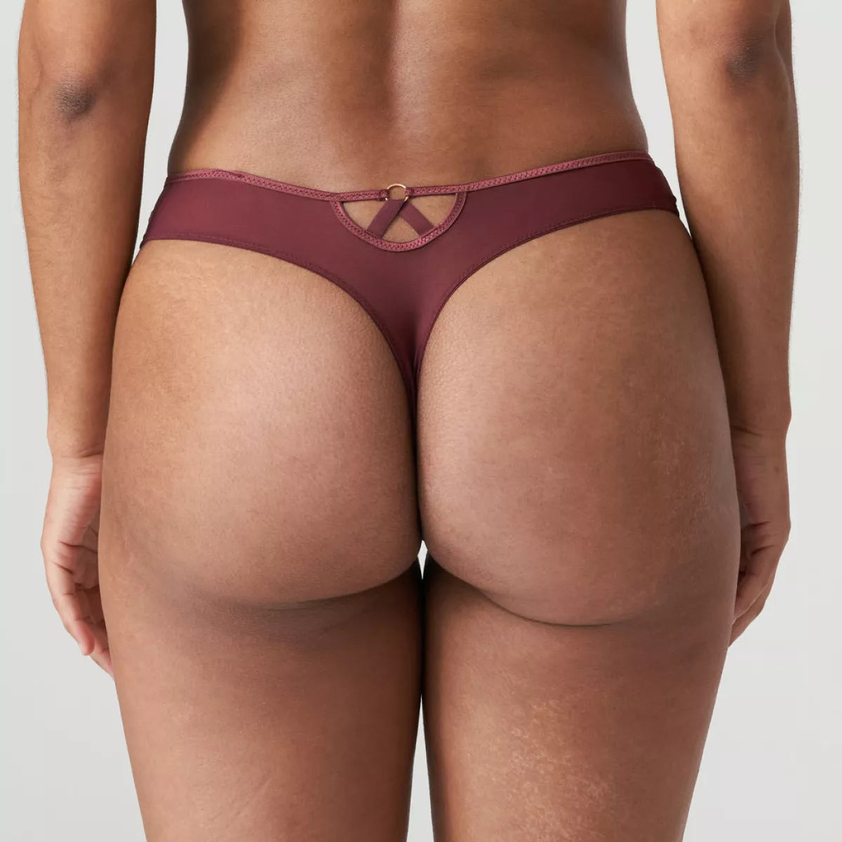 String met kant vooraan en een sexy lintje met zilveren detail op de rug.