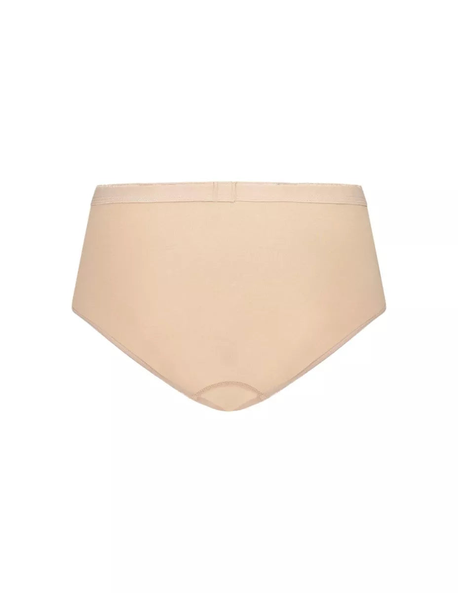 Het Midi model valt op de heup, sluit recht aan in de lies en heeft een badstof kruisje.