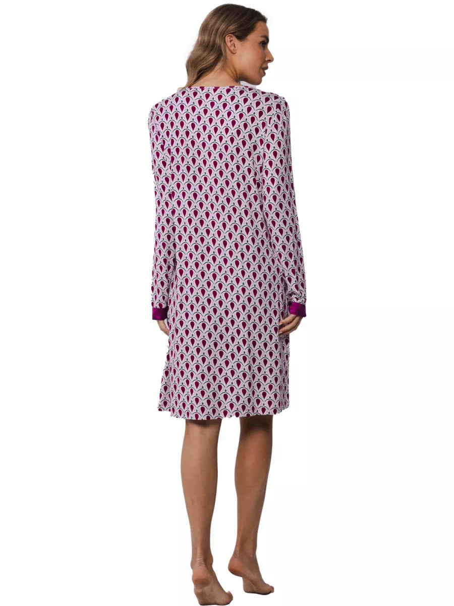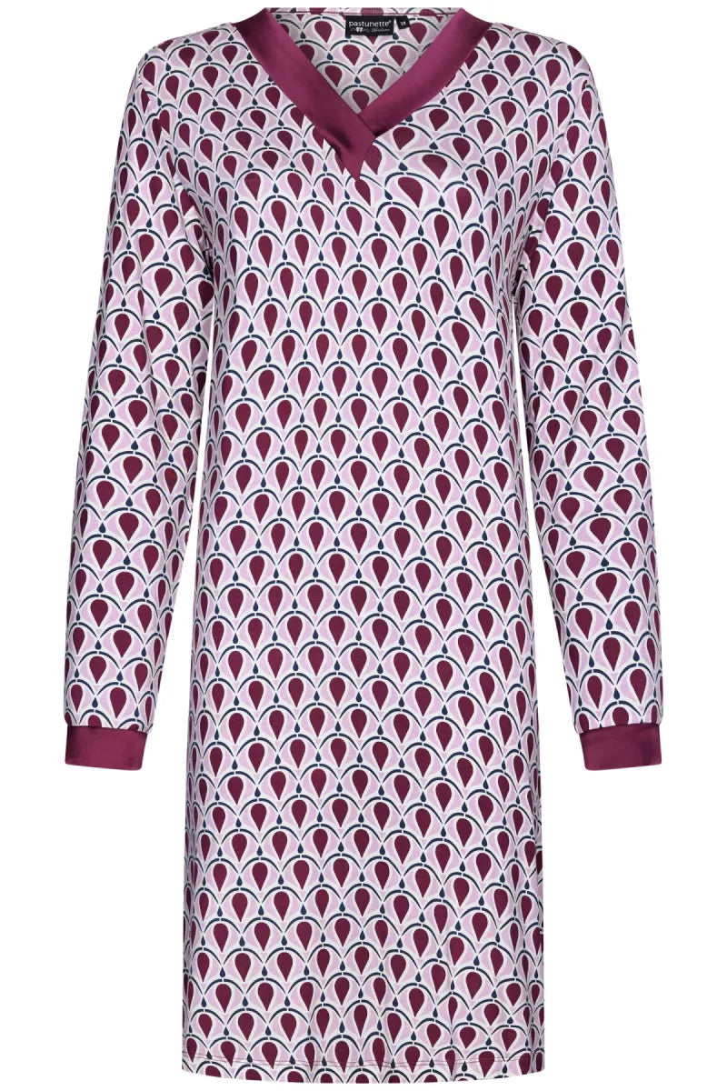 Dit nachthemd heeft een V-hals en lange mouwen.