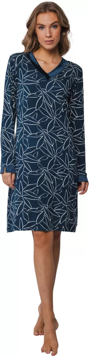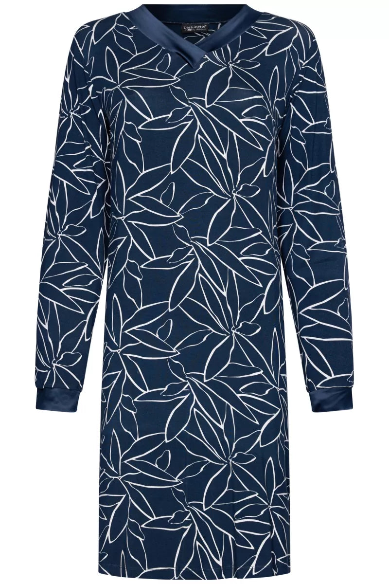 Dit nachthemd heeft een V-hals en lange mouwen.