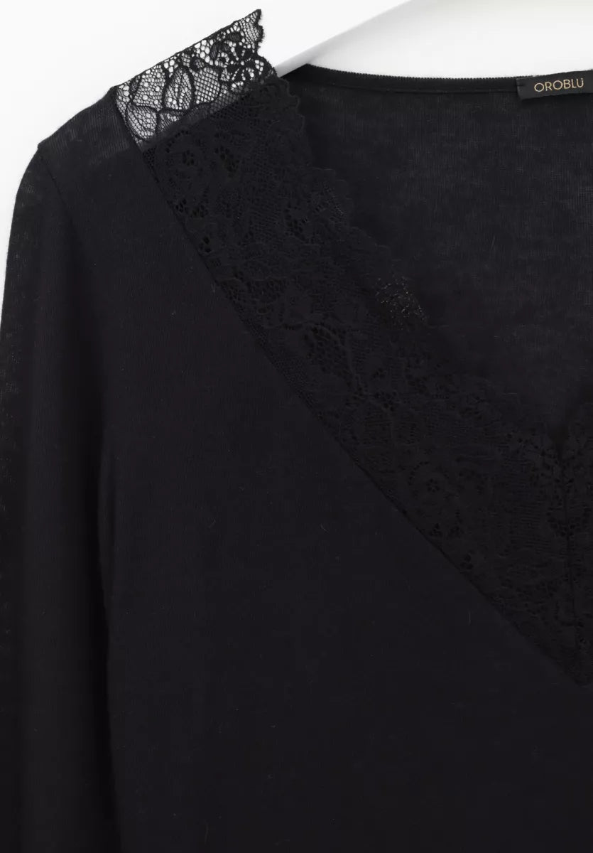 Oroblu - Shirt Lange Mouw - Perfect Line Cashmere Lace - VOBT67430 Black