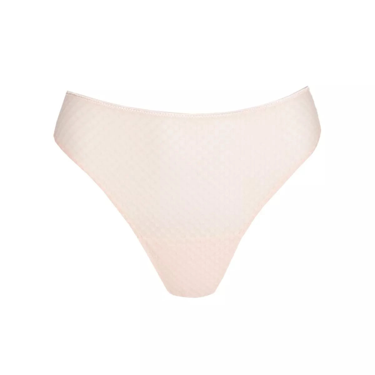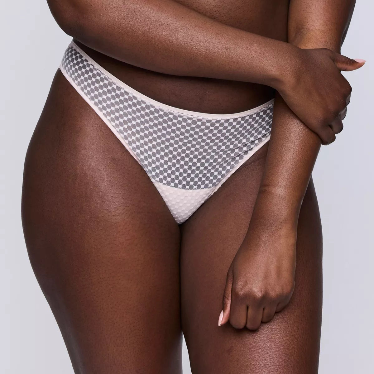 Deze string van transparante bolletjestule heeft grafische straps opzij. Sexy en fashionable!