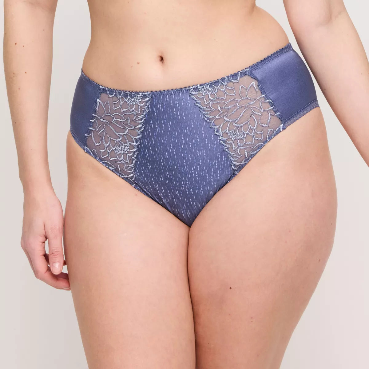 Tailleslip die hoger komt in de taille en je billen comfortabel bedekt. De benen zijn vooraan elegant uitgesneden.