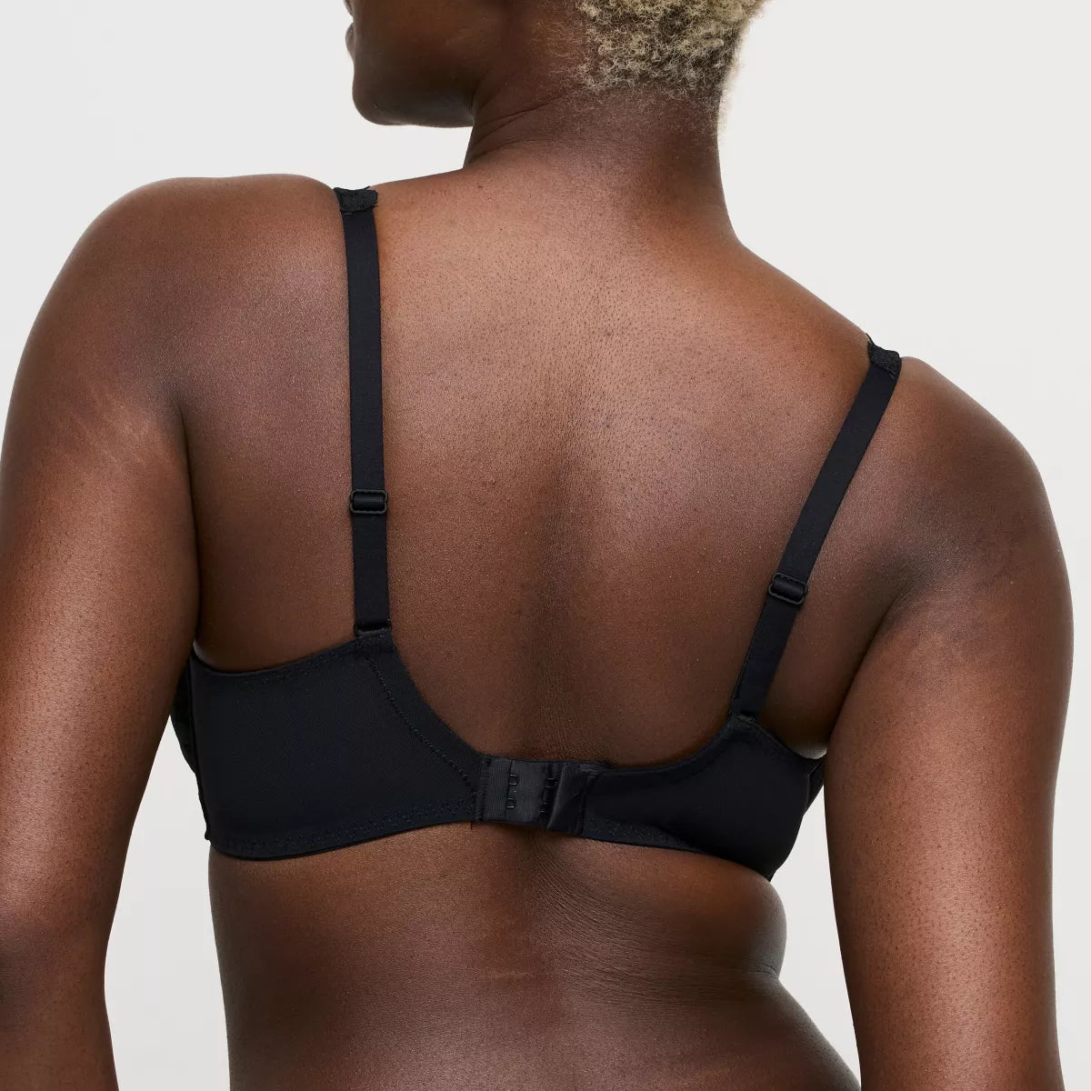 De driedelige constructie van de cups liften je borsten; het zijstukje centreert ze en geeft ze extra steun.