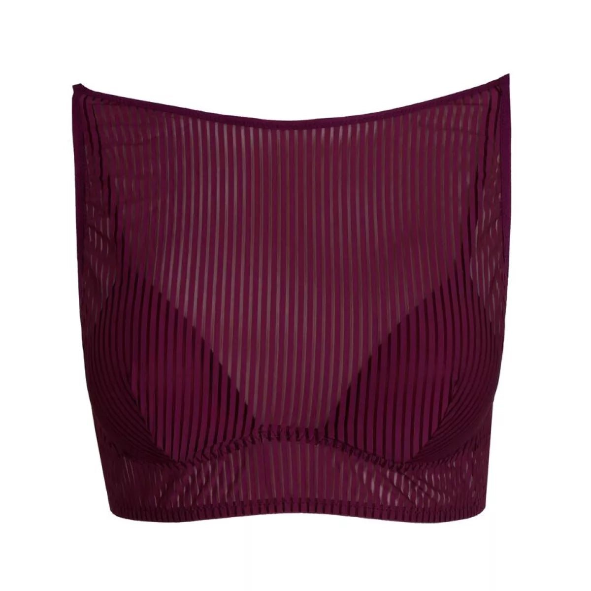 Dit topje valt op door het gestreepte patroon in de semi-transparate stof. Door de voorgevormde cups erin heb je toch een veilig gevoel ;)