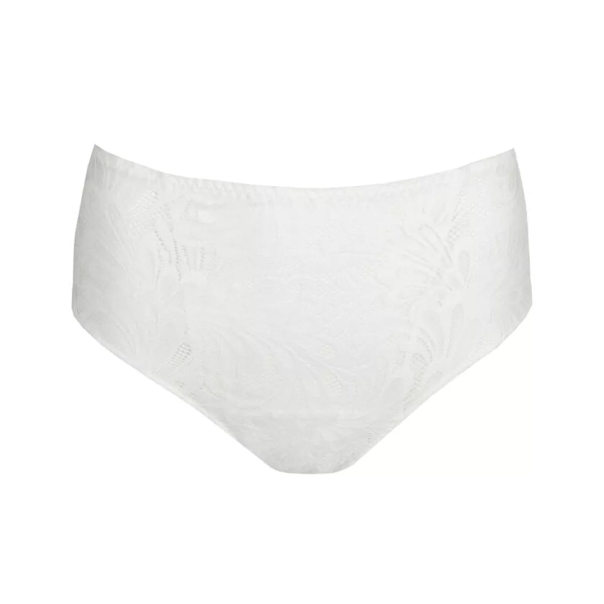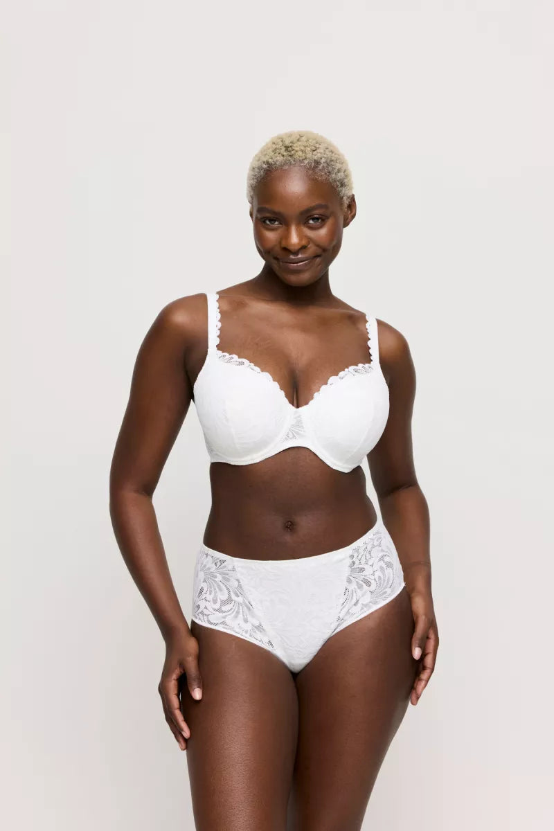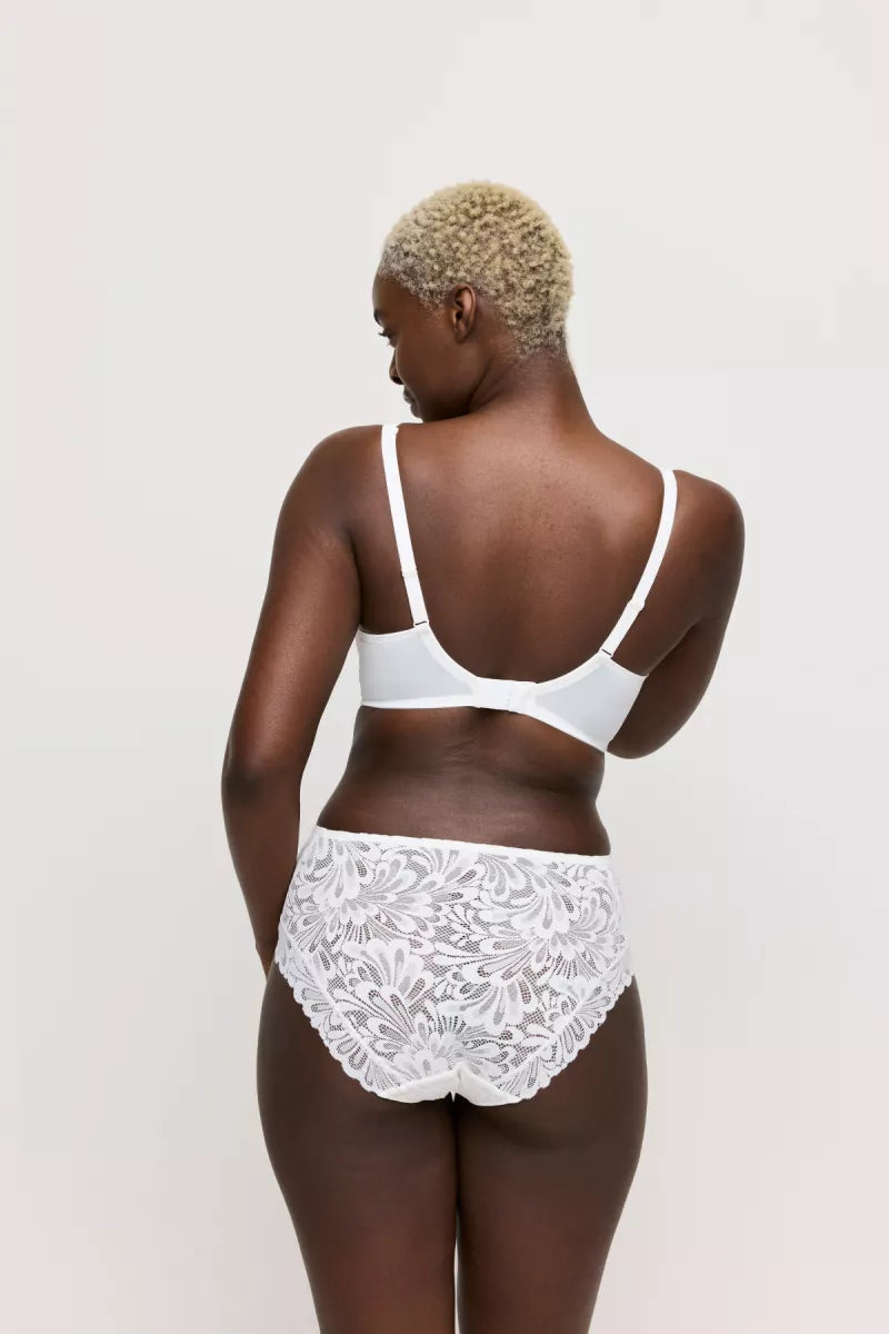 De achterzijde is geheel van kant en heeft een gladde afwerking die niet aftekent onder kleding.