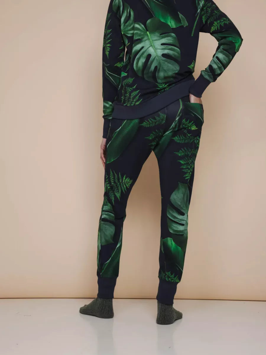 Dit is een stijlvolle all-over print van grote, donkergroene bladeren. Fris en botanisch, maar met een rustgevende uitstraling. Het bos roept, of was het toch je bed?