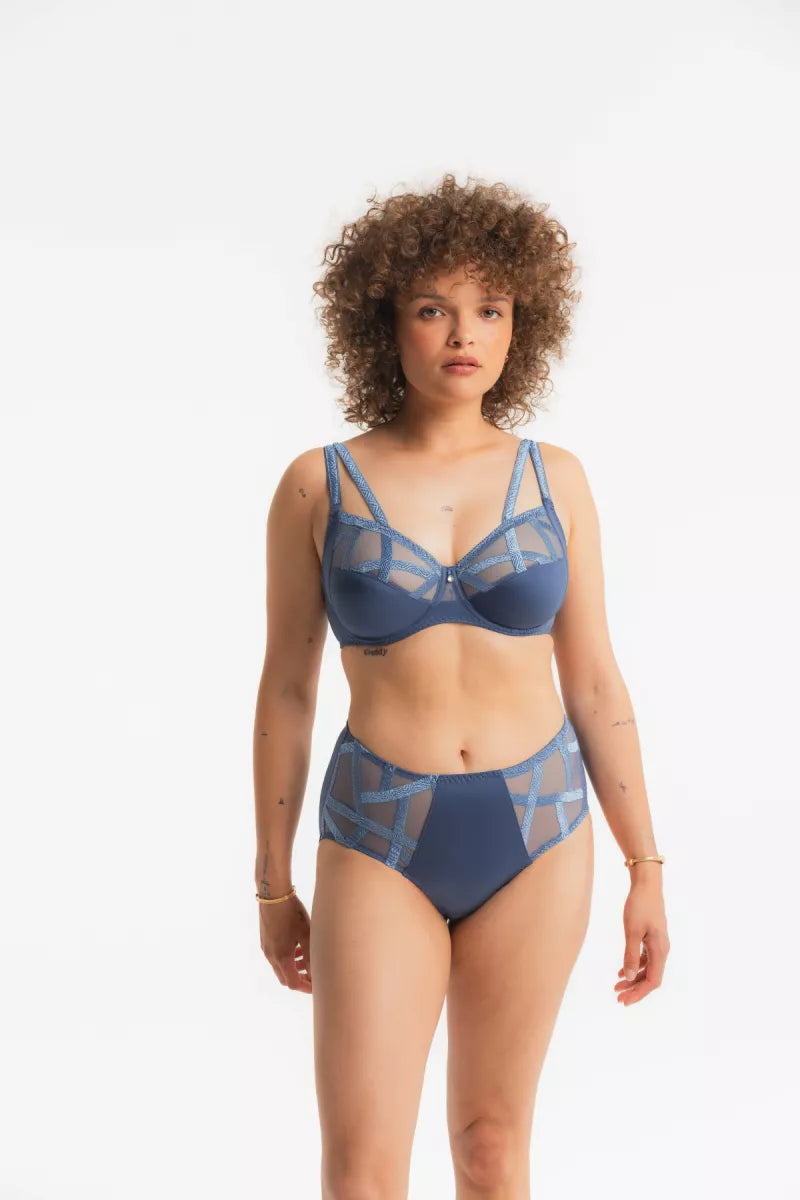 De volle cup bh uit de serie Série is voorzien van trendy geometrische borduursels gecombineerd met transparante tule voor een sensuele uitstraling.