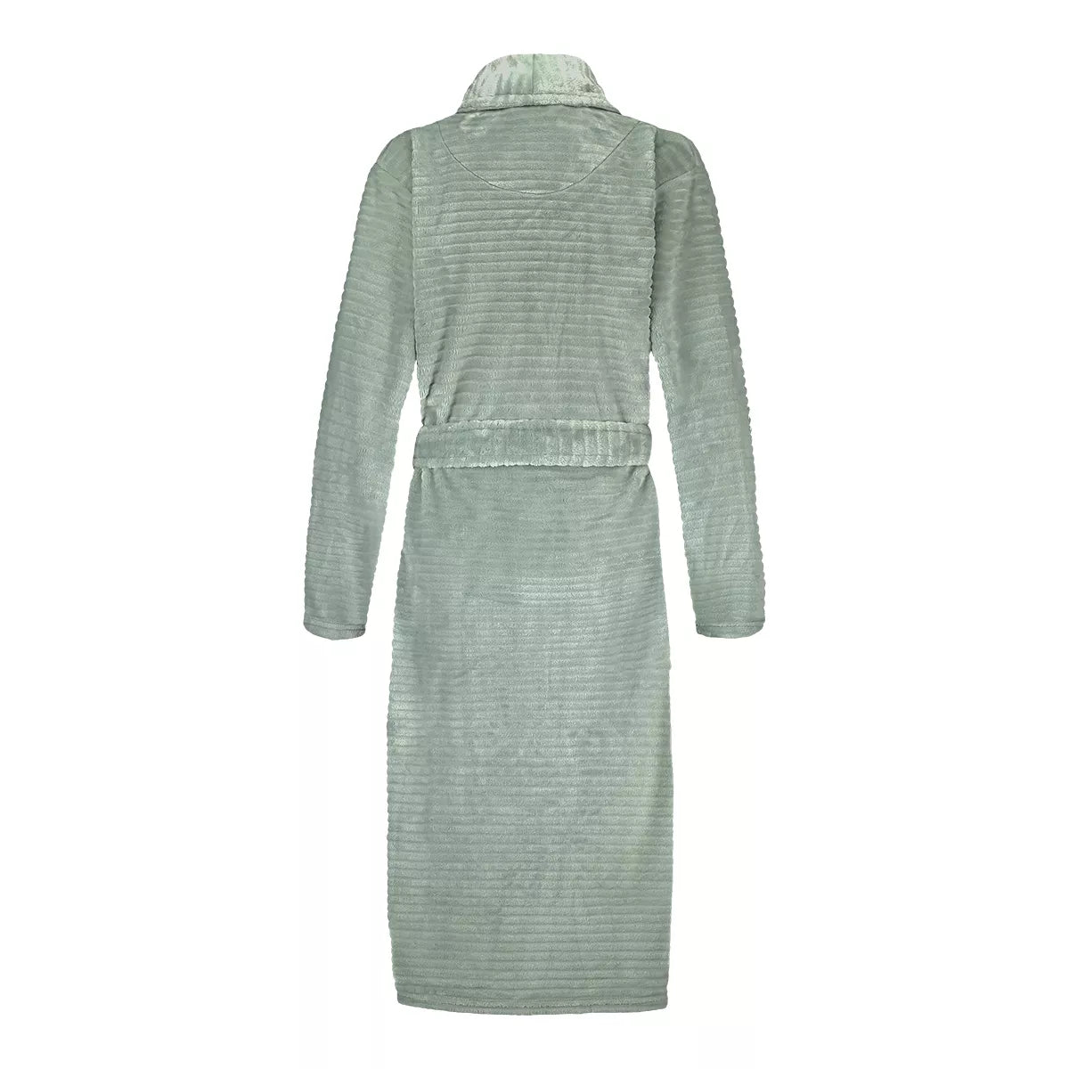 Het model heeft een sjaalkraag, twee opgestikte zakken en een ceintuur.