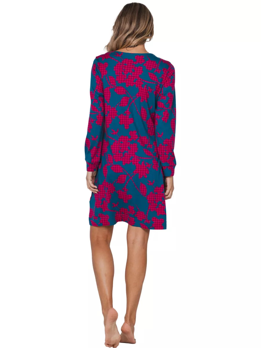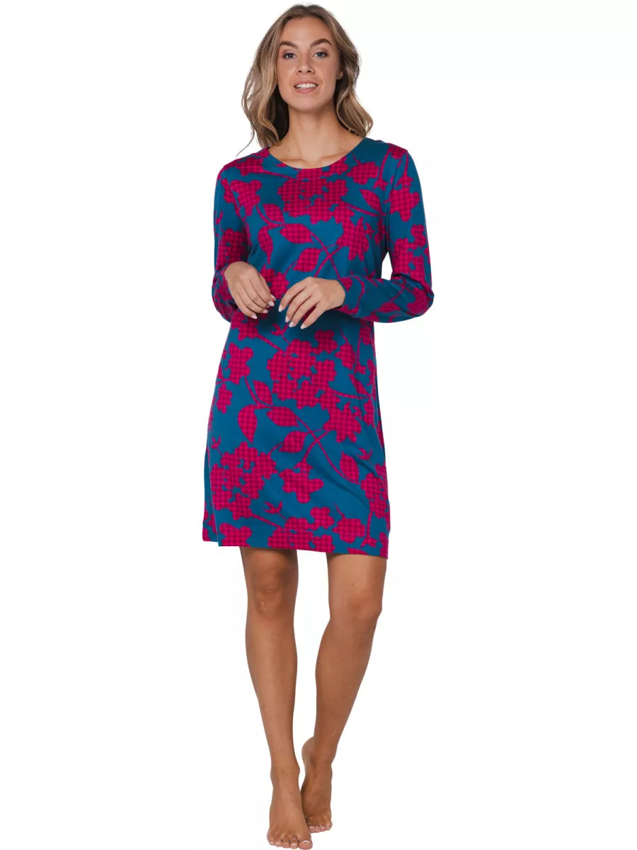 Dit nachthemd heeft een ronde hals en lange mouwen.