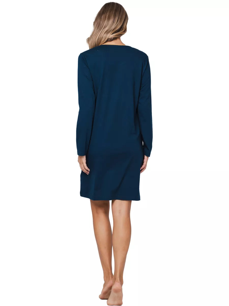 Dit nachthemd heeft een ronde hals en lange mouwen.
