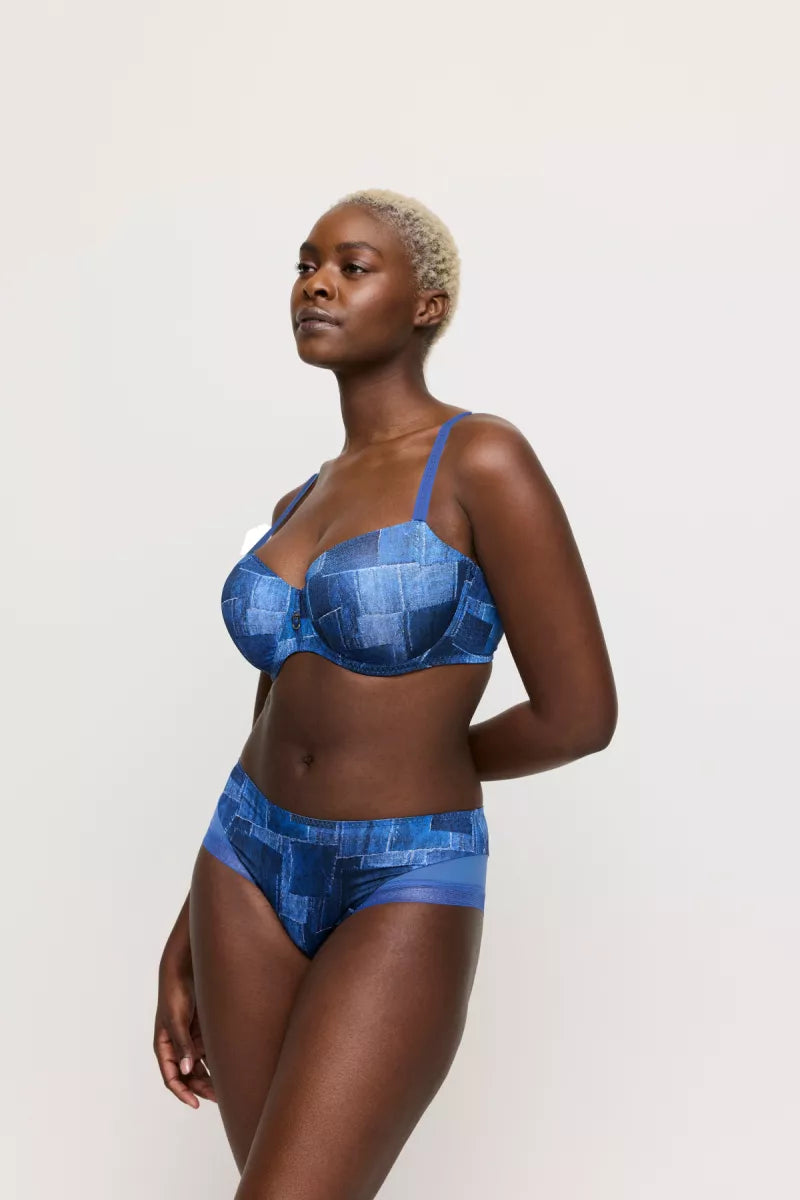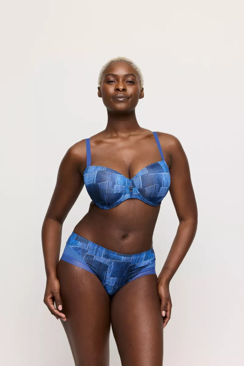 Deze speelse denimprint in verschillende blauwtinten draagt de naam Twill Blue.