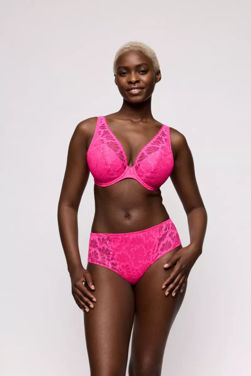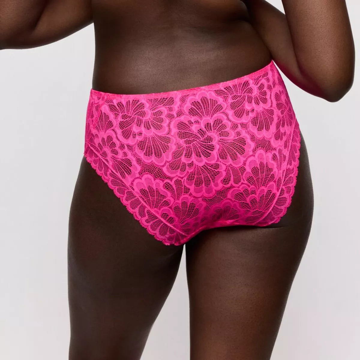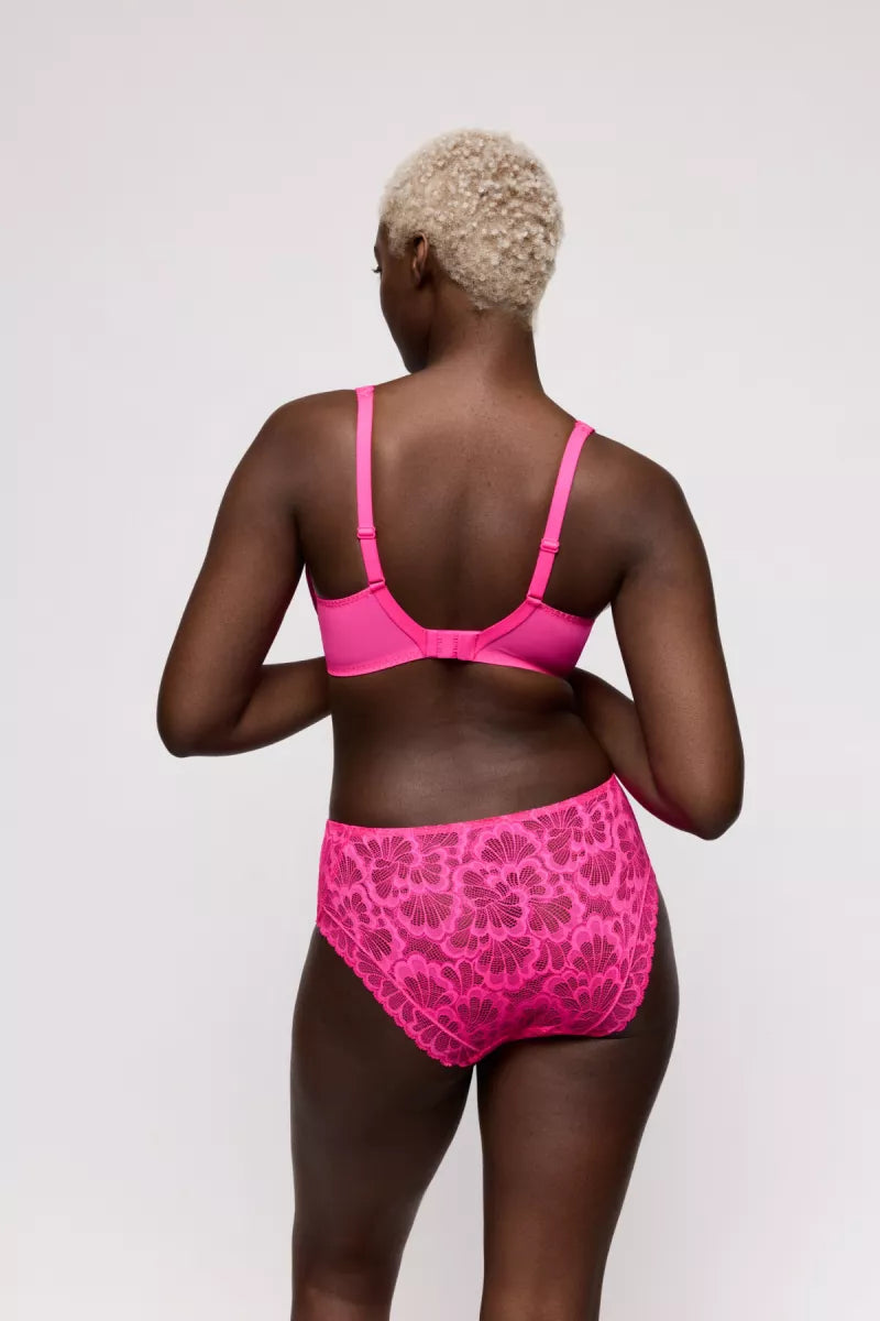 De achterzijde is geheel van kant en heeft een gladde afwerking die niet aftekent onder kleding.