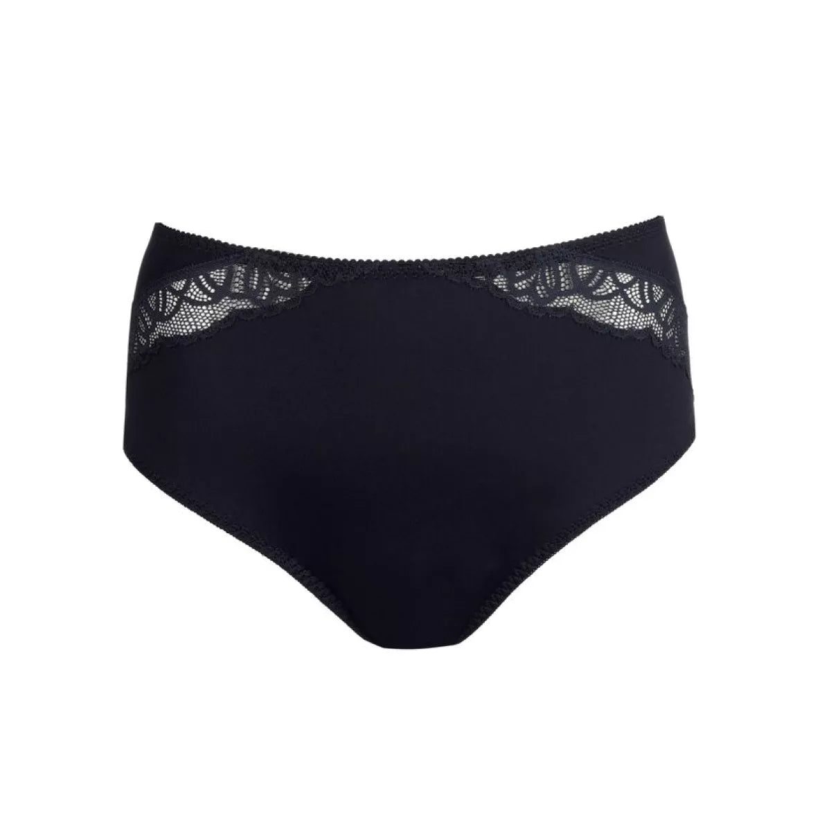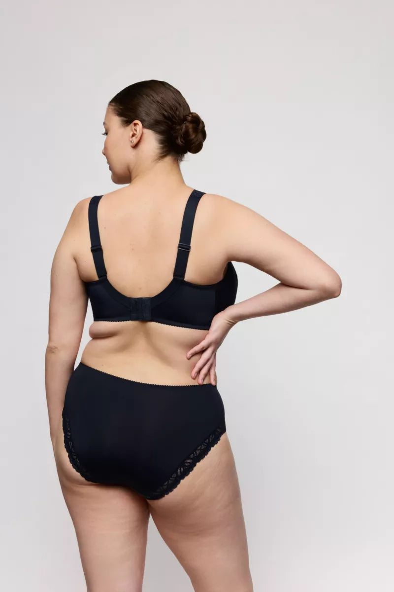 De hoge taille pakt je buikje comfortabel in. Het slipje snijdt niet in dankzij het kantje op de billen.