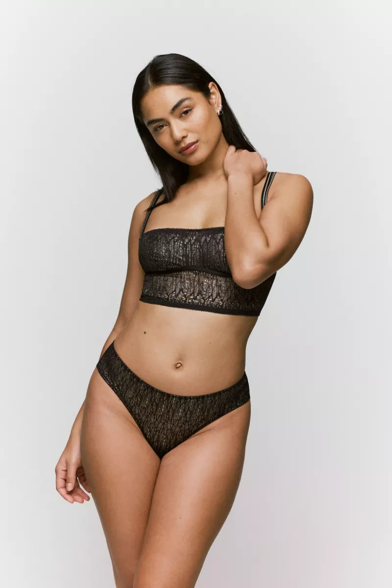 Het goud-metallic stofje is van Italiaanse makelij en voelt zacht en soepel aan op je huid.
