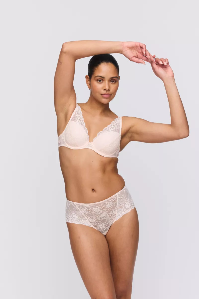 Maak kennis met Cyrile: deze nieuwe basisserie van Marie Jo gemaakt van zacht, gerecycleerd all-over kant.