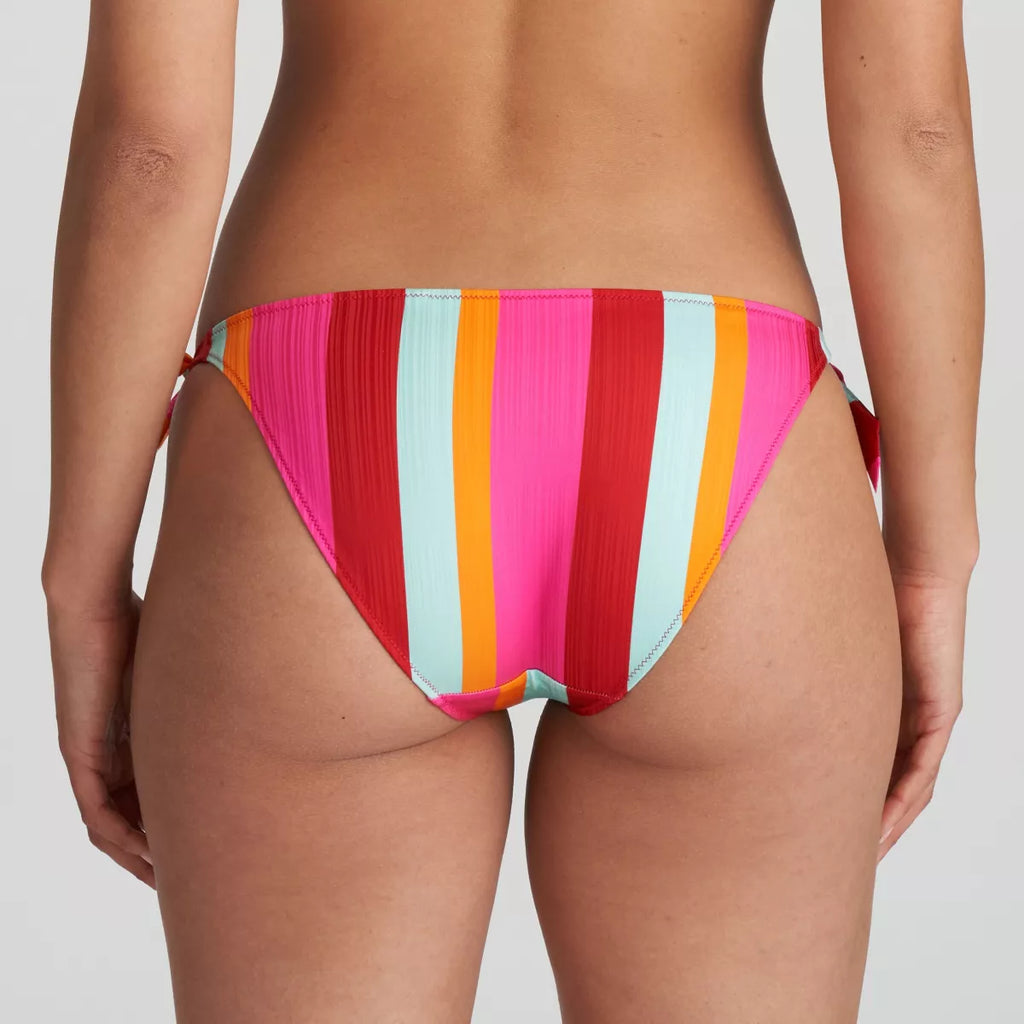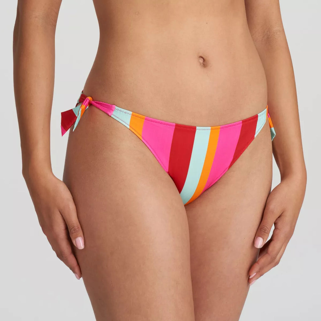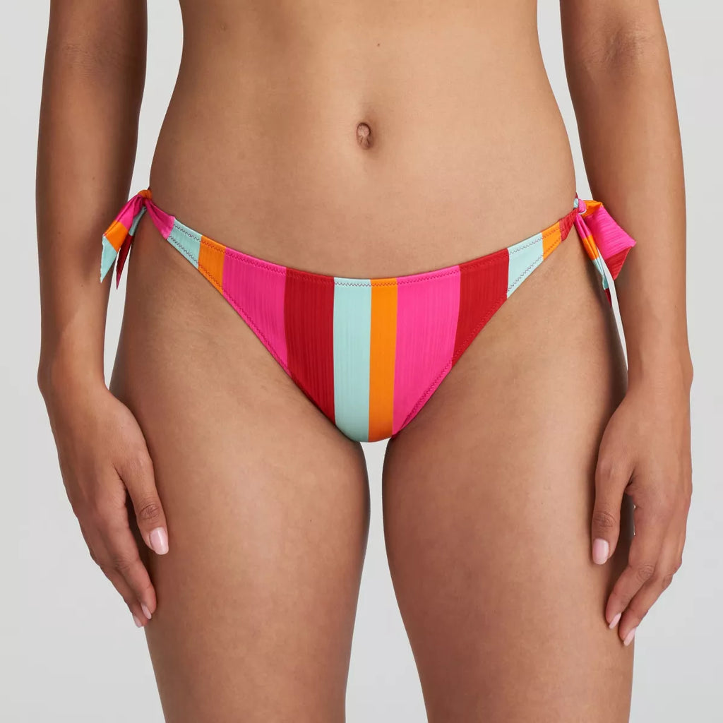 Ontdek onze heupslip met verticale, gekleurde strepen en koordjes aan de zijkanten, een frisse en toch ook sexy look.