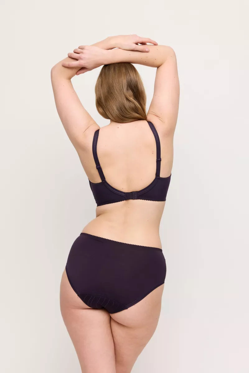 Nu verkrijgbaar in Amethyst Gem: een diepe, luxueuze paarstint met broderie in zacht lavendel, rijk violet en een vleugje koper. De glanzende garens vangen het licht prachtig en geven deze bh een frisse, verfijnde uitstraling.