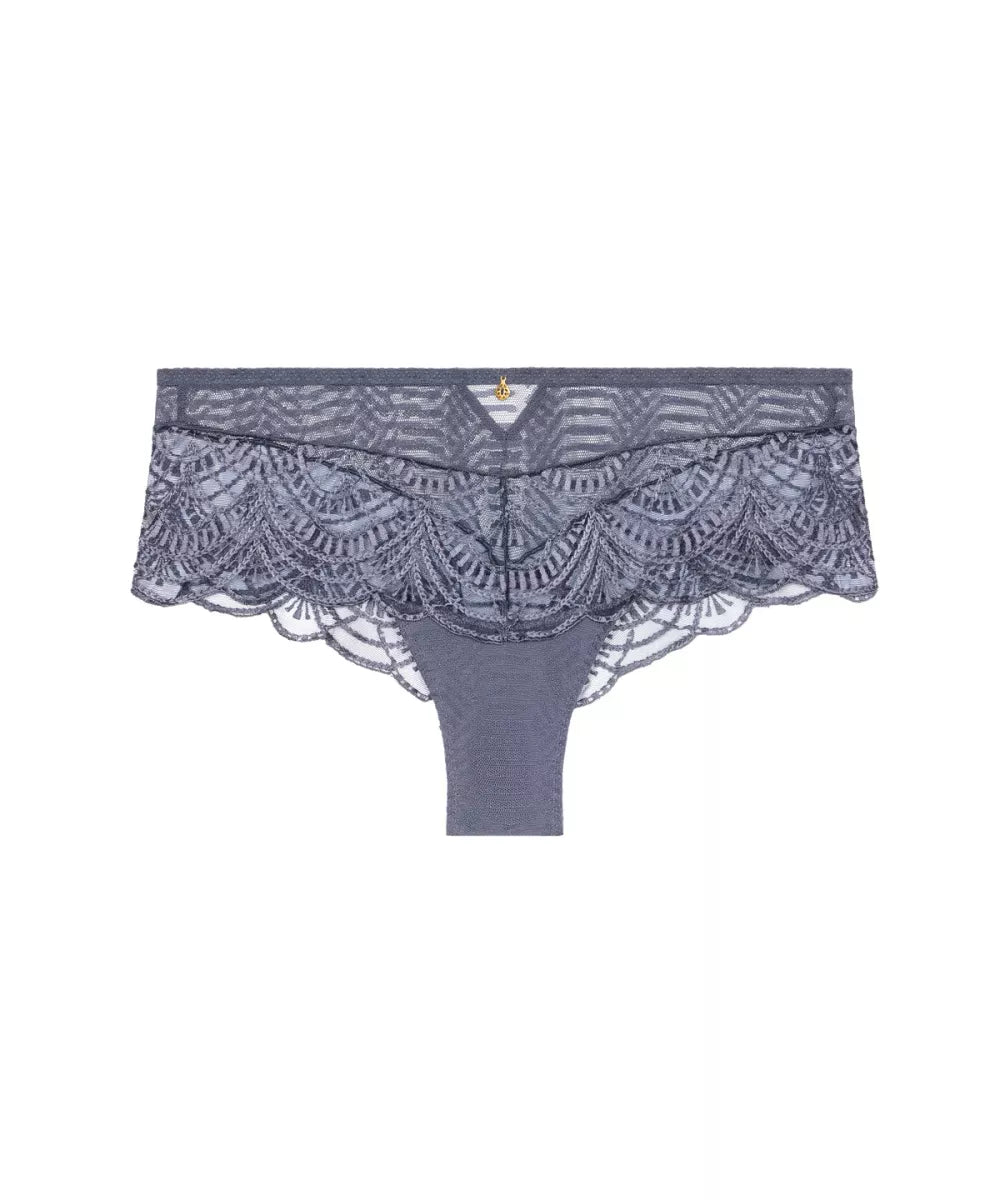 Deze hipster is geheel van broderie; de stoffen zijn zo geplaatst dat ze je rondingen op een sensuele manier volgen.