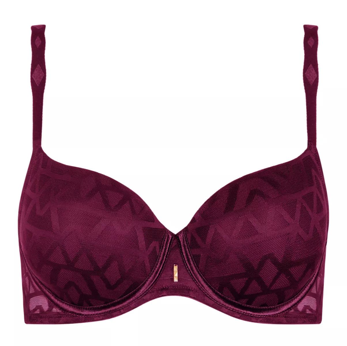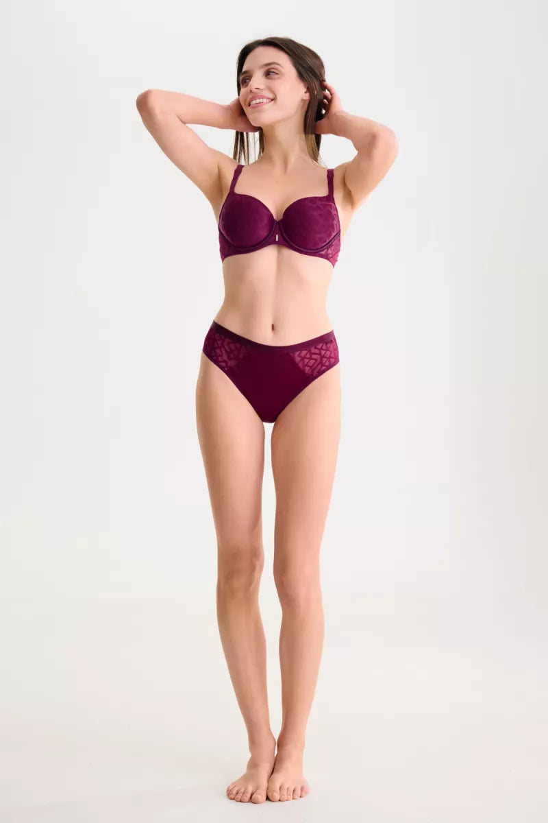 Deze bh heeft beugels, voorgevormde cups en een vrouwelijke belijning.