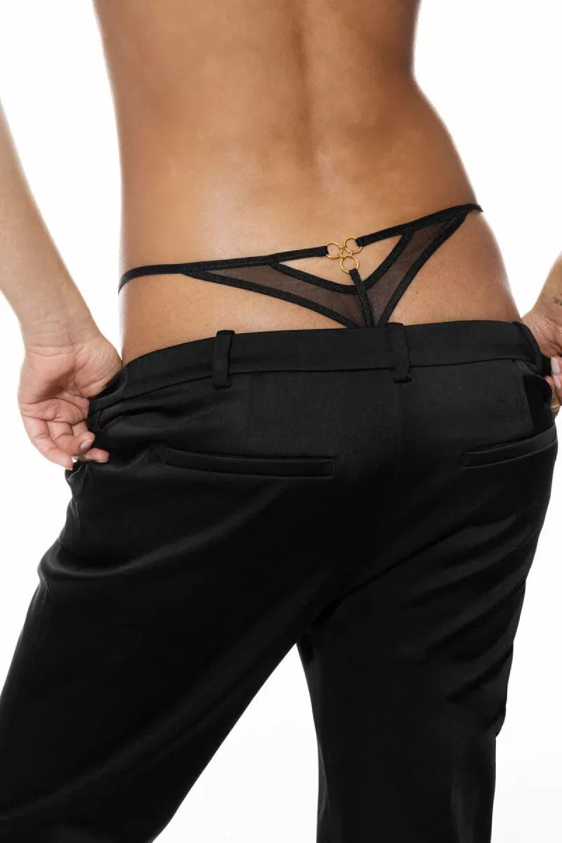 Deze romantische string valt smal op de heupen.