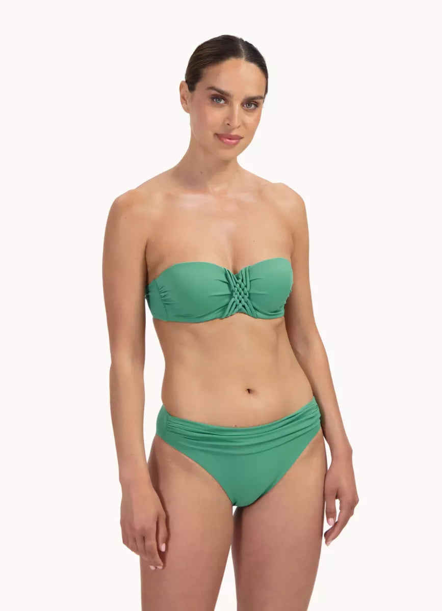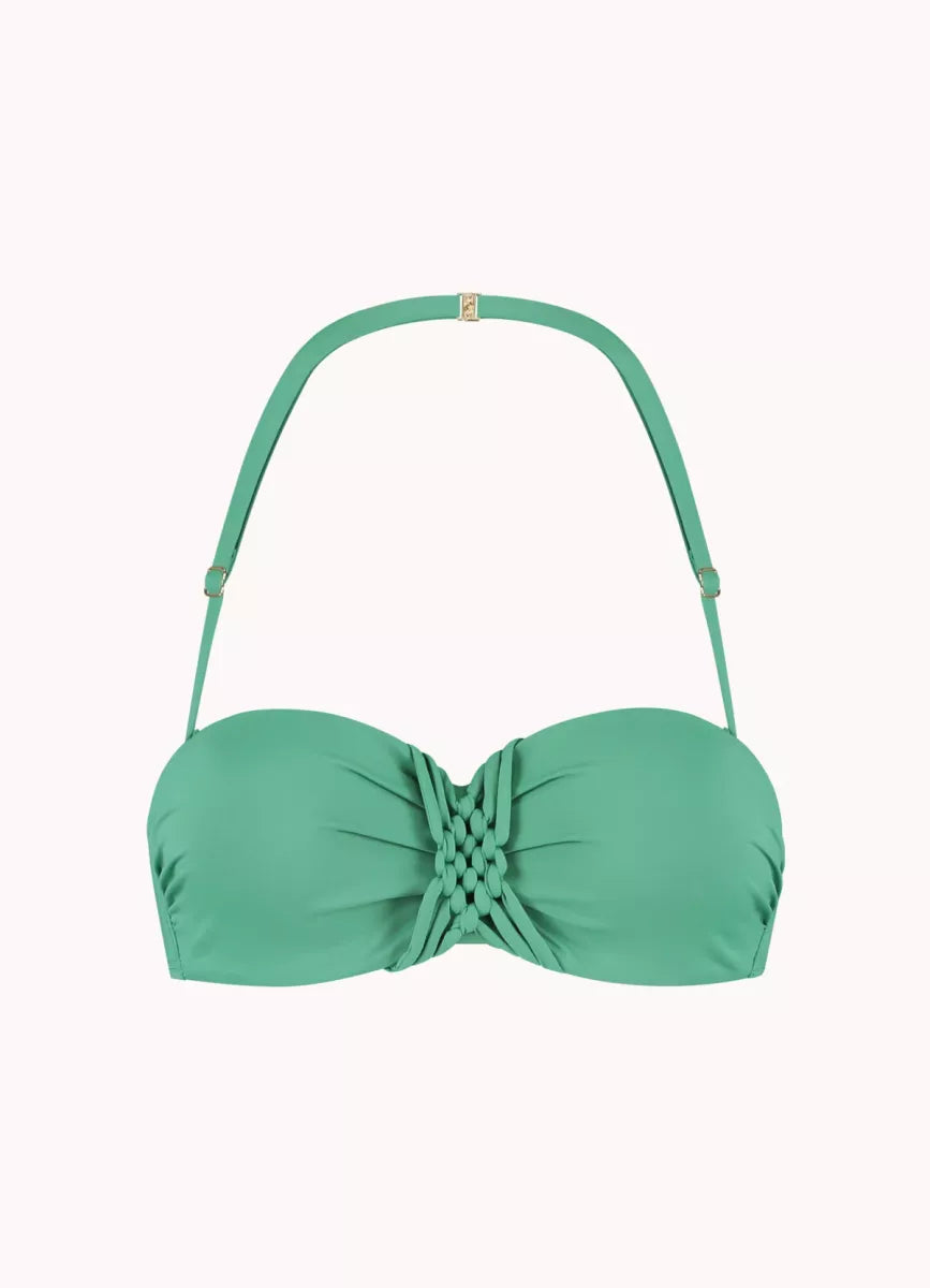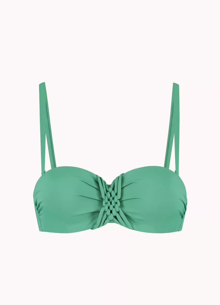 Deze bikinitop heeft voorgevormde cups, beugels en een elegant macramé-detail middenvoor.