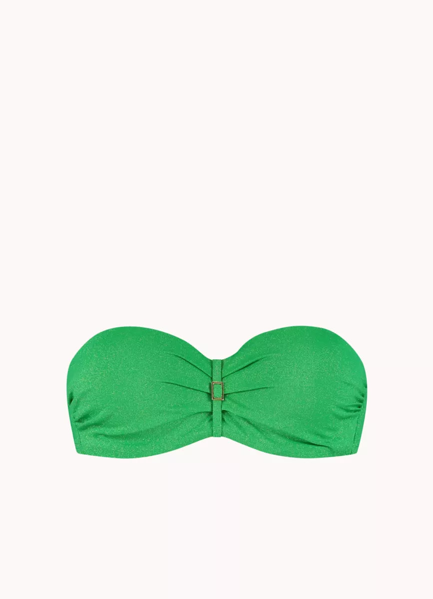 Deze bikinitop heeft voorgevormde cups, beugels en een elegante twist met een gespje middenvoor.
